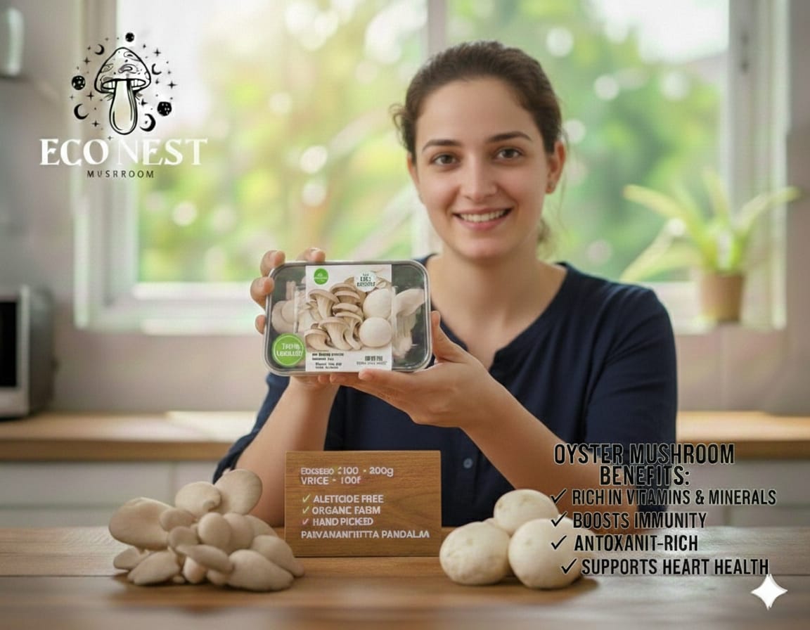 Grown in the heart of nature, our mushrooms are low in calories, fat-free, and rich in selenium, potassium, vitamin D, and riboflavin. Every bite from EcoNest Mushroom is a step toward a healthier, more sustainable life.